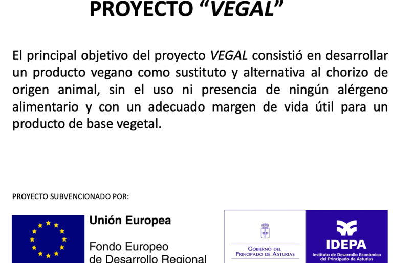 El principal objetivo del proyecto VEGAL consistió en desarrollar un producto vegano como sustituto y alternativa al chorizo de origen animal, sin el uso ni presencia de ningún alérgeno alimentario y con un adecuado margen de vida útil para un producto de base vegetal.